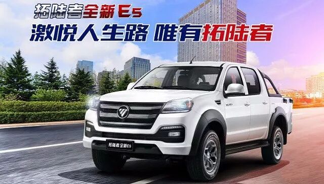 拓陆者全新E5皮卡是老款E5车型的全新换代车型,新款车型采用了全新外观设计,整车外观粗犷、硬朗,线条棱角分明,大嘴式前脸,匹配夸张前保险杠,粗壮宽体三幅镀铬格栅匹配熏黑大灯闪耀俊朗魅力,镀铬后视镜、大轮眉,彰显越野风范。共有标准版与加长版两种车型,车身尺寸分别为5310×1880×1860mm、5603×1880×1860mm,轴距分别为3105、3398mm。